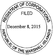 4. bears the seal/stamp of: Registrar of Corporations, Republic of the Marshall Islands