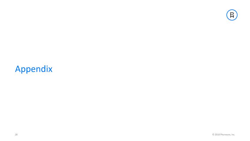 Investment Highlights © 2018 Phunware, Inc. 27 World Scale Mobile Platform Pioneering Multiscreen as a Service (MaaS) platform, the only fully integrated software platform that equips the Fortune 500 to engage, manage and monetize their mobile application portfolios globally at scale Provides everything brands need to create “sticky” experiences throughout the entire mobile application lifecycle Inventory of more than 2 billion Phunware IDs across hundreds of mobile application portfolios, more than 1 billion monthly a cti ve devices and more than 1 trillion database events Experienced Management Team and Board Experienced senior team of industry experts with experience in scaling high - growth tech companies Top - tier board of directors with complementary domain and operational expertise Strong Financial Profile Over 90% of revenue derived from recurring multi - year software and data subscriptions (SaaS/DaaS) and reoccurring audience build ing, audience engagement and audience monetization transactions Strong revenue visibility – SaaS backlog of $28 million at the end of 2017 and $55 million projected for 2018 141% net dollar retention rate for CY 2017 Massive Market Opportunity Mobile Applications : The mobile application market is enormous, with worldwide smartphone users downloading more than 175 billion apps — and spending over $86 billion on them — in 2017 alone (Source: App Annie , 2017) Media : Users spend 66% of their online time on a mobile device and mobile advertising revenue now makes up 54% of all digital ad revenues (Source: IAB , 2017) Big Data : According to IDC, the big data and business analytics market will grow from $130 billion in 2016 to more than $203 billion in 2020 (Source: IDC , 2016) World - Class Financial Sponsors and Backers Phunware is backed by blue chip strategic and financial investors including Cisco, PLDT ( Philippine Long Distance Telephone Company) , Samsung, Wavemaker Partners and WWE The Stellar team has completed two successful SPAC transactions and has significant public company experience