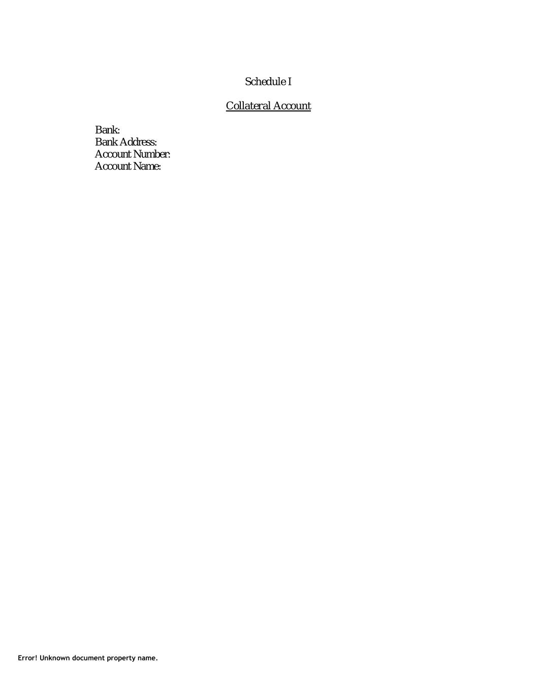 Schedule I Collateral Account Bank: Bank Address: Account Number: Account Name: Error! Unknown document property name.